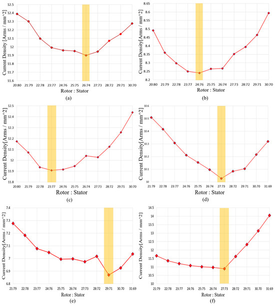 (12) 在哪里是空載相反電動勢和是相電流。將計算得到的電流除以繞組橫截面積,即可得到電流密度。通過調整轉子定子比,選擇電流密度最小的點作為設計點。