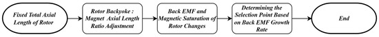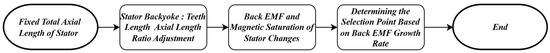 圖 10. 隨后,在定子中,齒和定子背軛的軸向長度被分配。此步驟旨在確保輸出功率,同時最大限度地降低負載下磁飽和的風險。與之前的情況一樣,分配長度是基于單匝繞組的空載反電動勢確定的。隨著齒長的增加,定子背軛的厚度減小,最終達到磁飽和。此時,設計點同樣被定義為單匝空載反電動勢增量低于0.1%的點。圖11顯示了齒長確定流程圖。